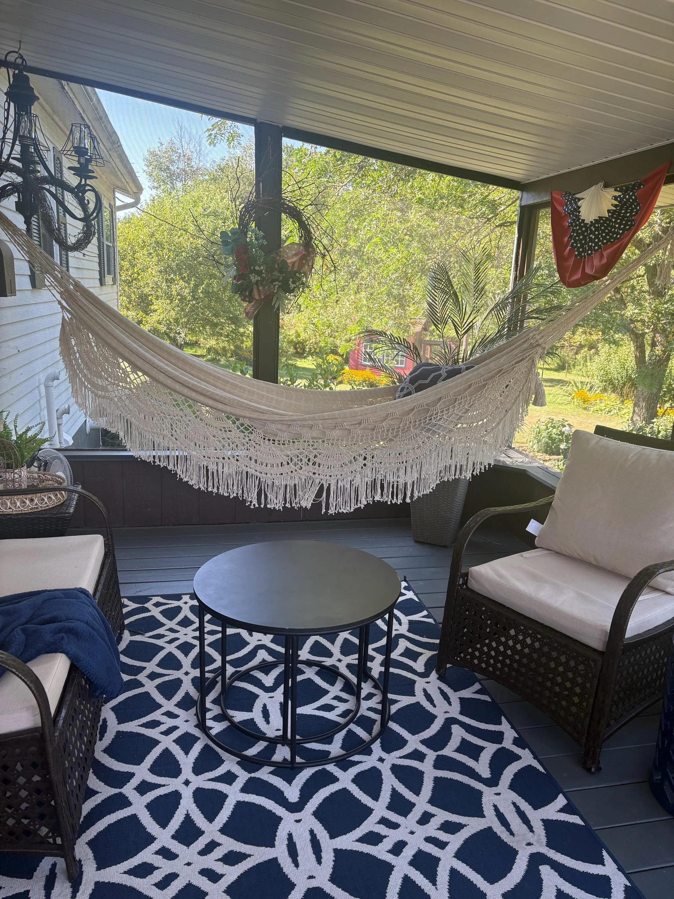 Whether you're sipping on a refreshing beverage, napping, or lying down with a good book, it is guaranteed to provide lots of relaxation. This woven crochet hammock is perfect indoors or on a porch or patio outdoors. It is a piece of furniture that adds style and a luxurious look to your space.